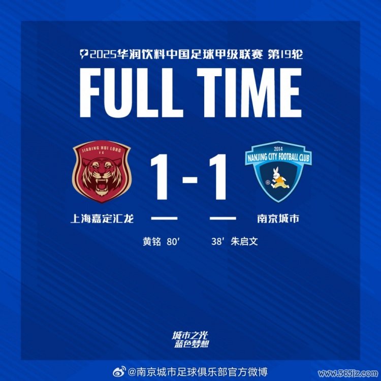 全场赛事 结束,南京城市客场应战 1-1战平上海嘉定汇龙