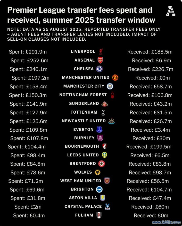 (注:数据截至2025年8月25日,田径新闻直播吧仅为已报道的转会费 —— 不包含经纪人费用和转会税费、且未计入转会分成条款的影响)