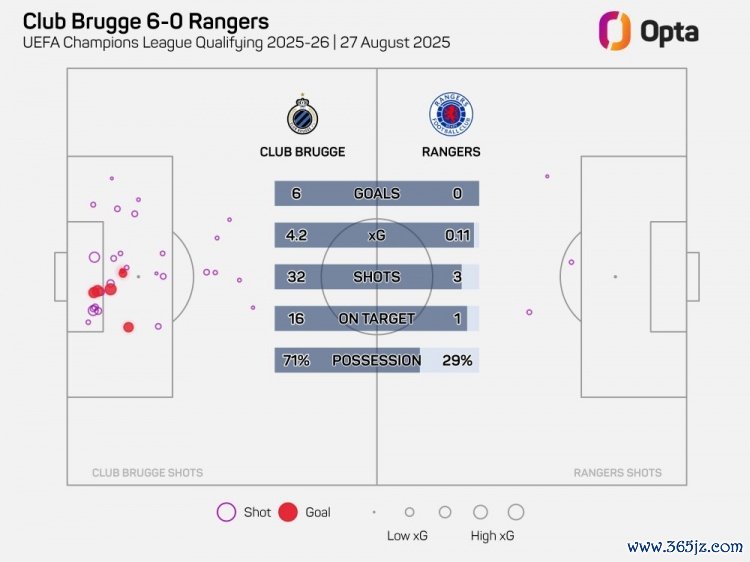 据OptaJohan的数据统计 ,田径新闻布鲁日6-0大胜流浪者, 排球资讯NBA直播这是他们自2001年9月27日(7-1尼科西亚奥林匹亚科斯)以来在欧战中最大比分的获胜 。