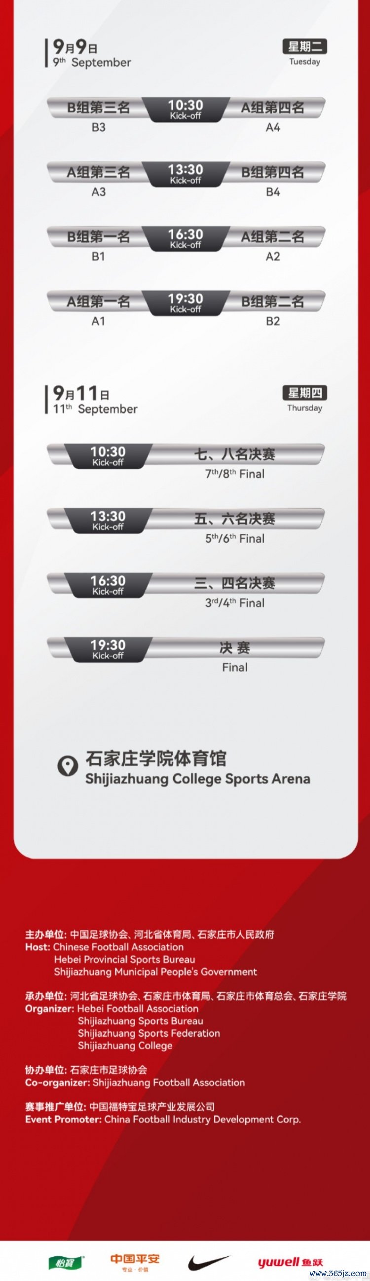 2025CFA中国之队·“北人集团”石家庄五人制古代足球 国际友谊赛 赛程公布!中国国家男子五人制古代足球 队与柬埔寨男子五人制古代足球 队、丹麦男子五人制古代足球 队、印度尼西亚男子五人制古代足球 队、韩国男子五人制古代足球 队、缅甸男子五人制古代足球 队、新西兰男子五人制古代足球 队、阿联酋男子五人制古代足球 队九月约战河北石家庄。