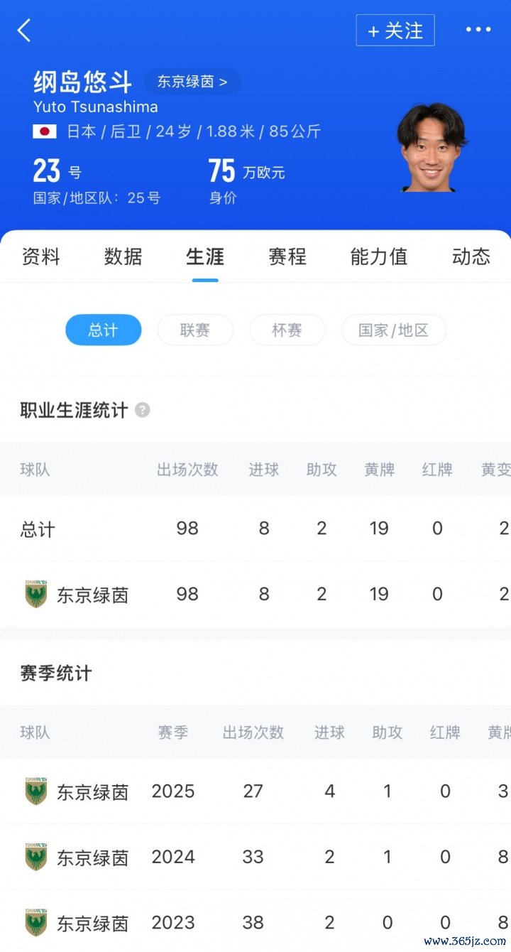 纲岛悠斗身高1米88, 排球资讯惯用右脚, 亚冠目前是东京绿茵的主力球员,田径新闻英超直播他已经代表东京绿茵出战三个赛季,98场贡献了8粒得分 。据悉,他已经与安特卫普签约,很快就将开启比甲留洋生涯。他将与安特卫普阵中的日本守门员野泽大志相聚。