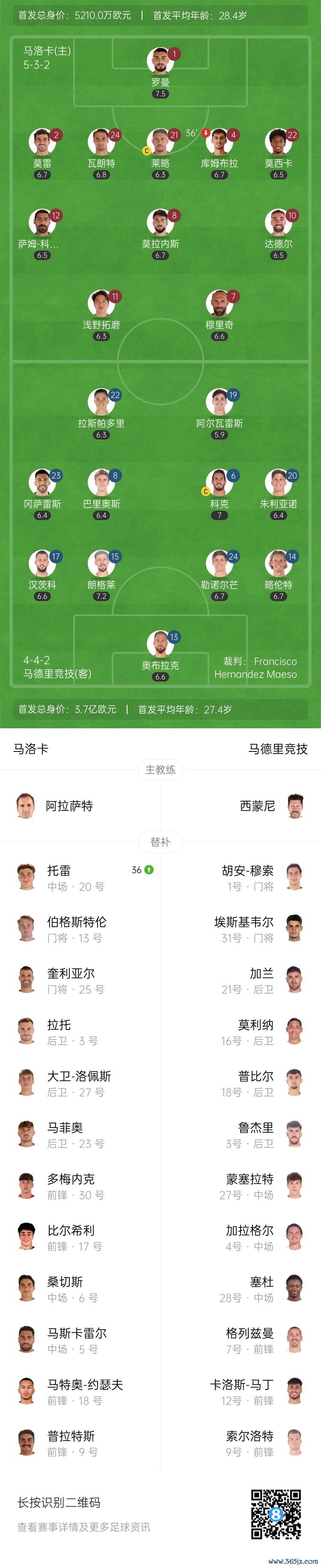 上半场补时5分钟。半场战罢,马洛卡0-0马竞。