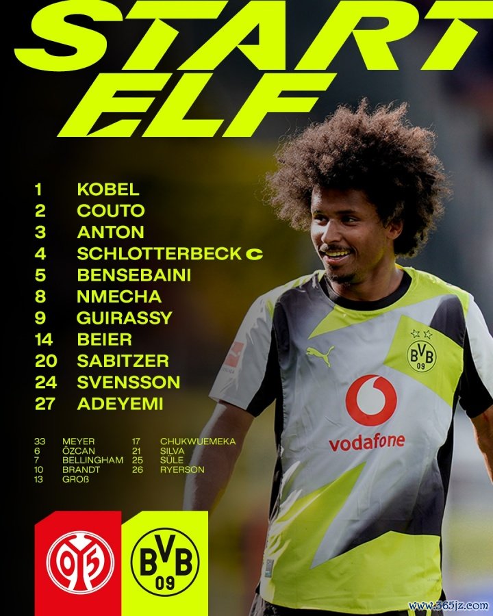 09月27日讯 德甲第5轮,多特客场应战 应战 美因茨,双方杆位名单公布,本场赛事 ,多特今夏的标王小贝林厄姆继续后备 ,田径新闻这已经是他连续第四场后备 。