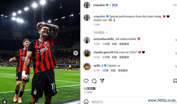 9月29日讯 在米兰2-1击败那不勒斯后,传射建功的普利西奇通过社交媒体庆祝了获胜 。