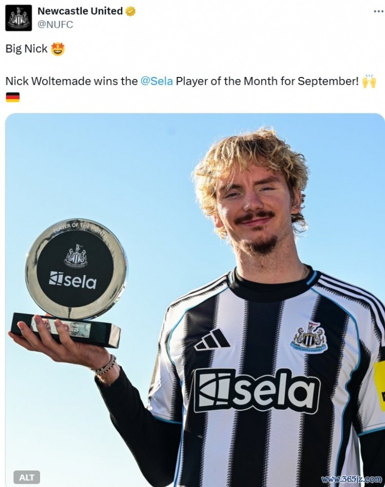 9月30日讯 纽卡官方公布了球队9月份队内最佳球员,新援沃尔特马德当选。