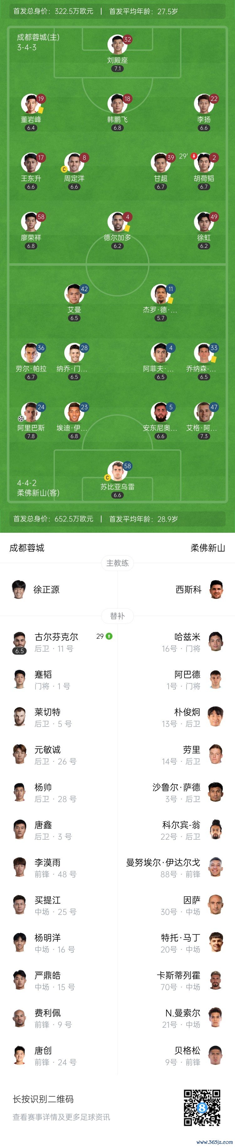 第27分钟,成都蓉城前场定位球,甘超主罚开到危险区域 内,李扬顶球攻门顶偏了↓