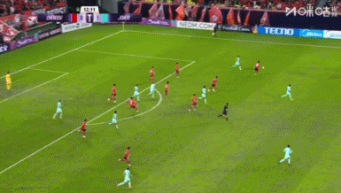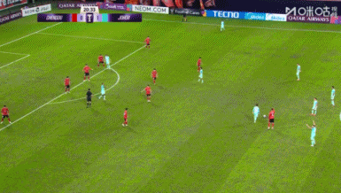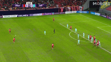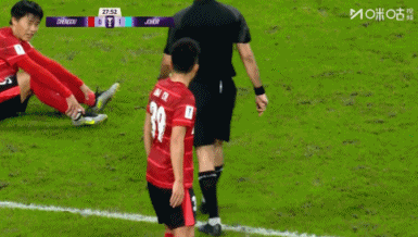 第12分钟,董岩峰补防到边路, 排球资讯违例 放倒了对手, 亚冠主裁判 向他出示警告 ↓