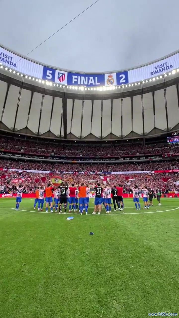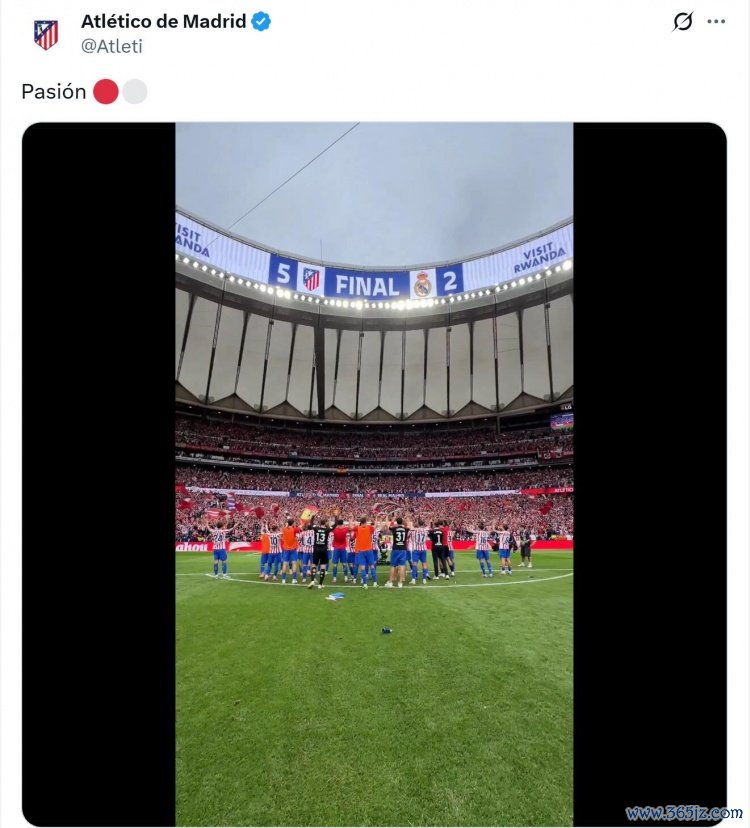 赛后马竞官推放出该队在这场赛事 后庆祝获胜 的视频, 排球资讯配文:热血 !