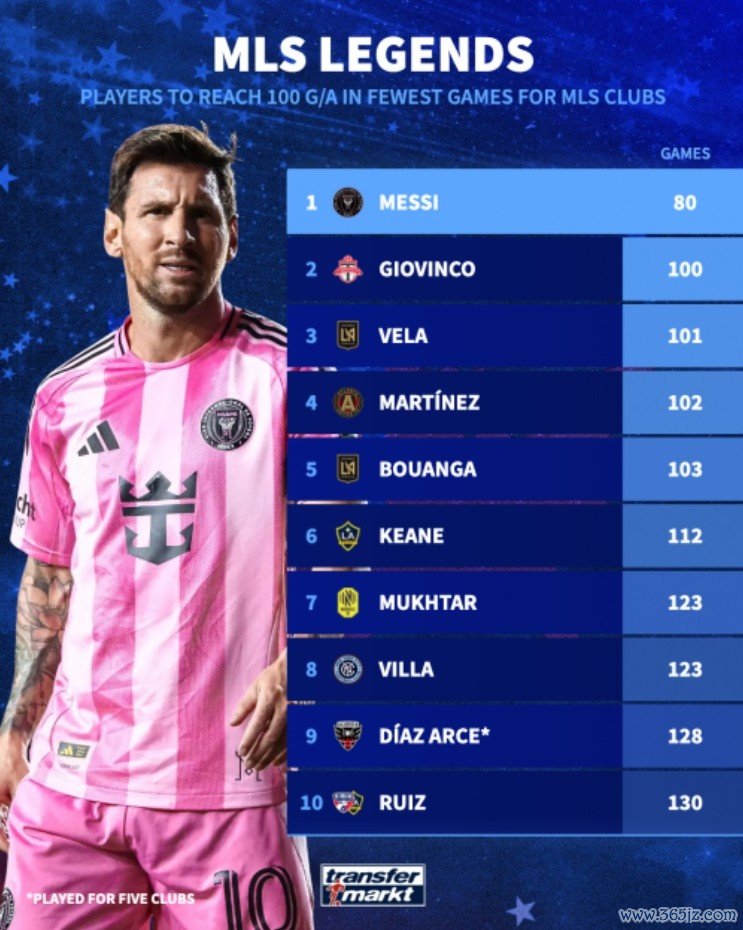 10月11日讯 离开欧洲足坛后,梅西加盟了美国大联盟的迈阿密国际,田径新闻阿根廷巨星保持了良好的竞技状态 。在为迈阿密出战80场赛事 的情况下, 排球资讯NBA直播梅西已直接加入 101球, 亚冠他成为美职联俱乐部历史加入 百球所用场次最少球员。