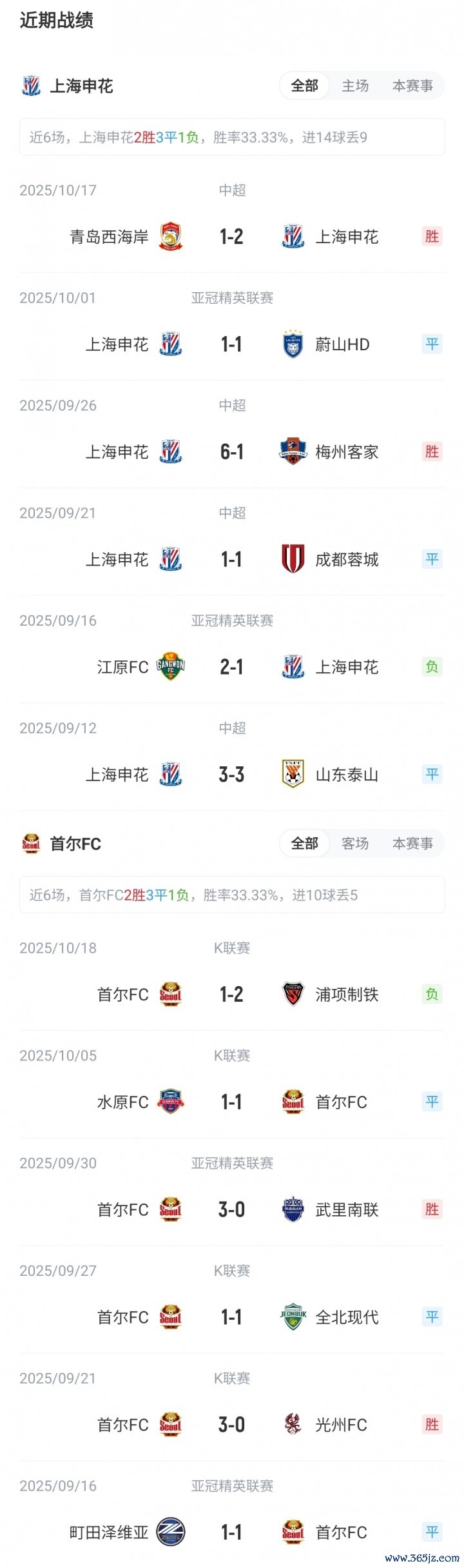 目前亚冠精英职业联赛 东亚区积分榜上, 亚冠申花1平1负积1分,位列第11;首尔1胜1平积4分,位列第4。双方此前从未有过交手。