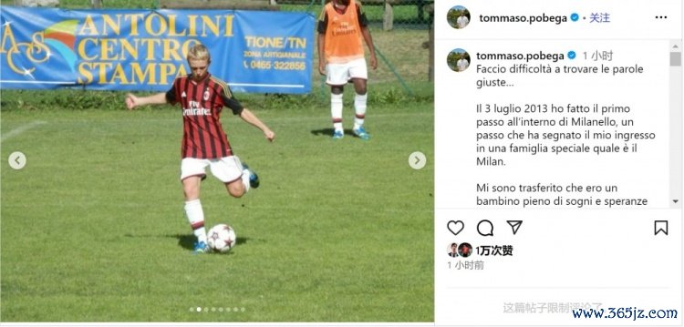 7月22日讯 米兰中场球员波贝加将加盟博洛尼亚,他在社交媒体上发文,与米兰告别。