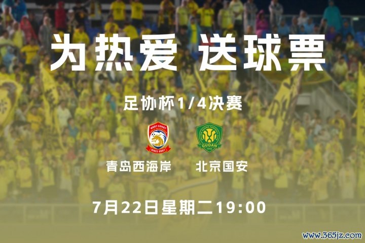 北京时间7月22日19:00,青岛西海岸与北京国安将展开足协杯8强首场对阵,吧友们有没有抢到这场赛事 的球票呢?焦点对决,现场看球才过瘾!小吧本次也为吧友们带来了球票好礼。