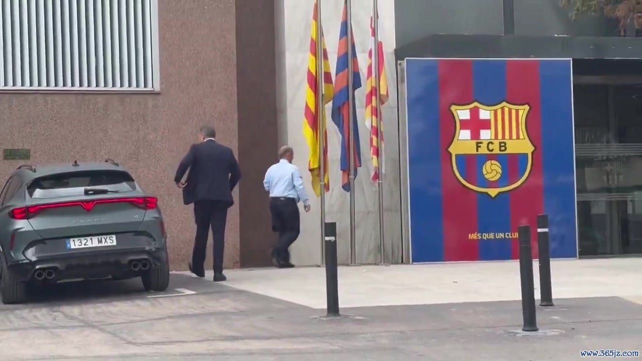 巴萨主席拉波尔塔乘车前往诺坎普运动活动 场 五洲新春,田径新闻下车时向现场的球迷们挥手致意。